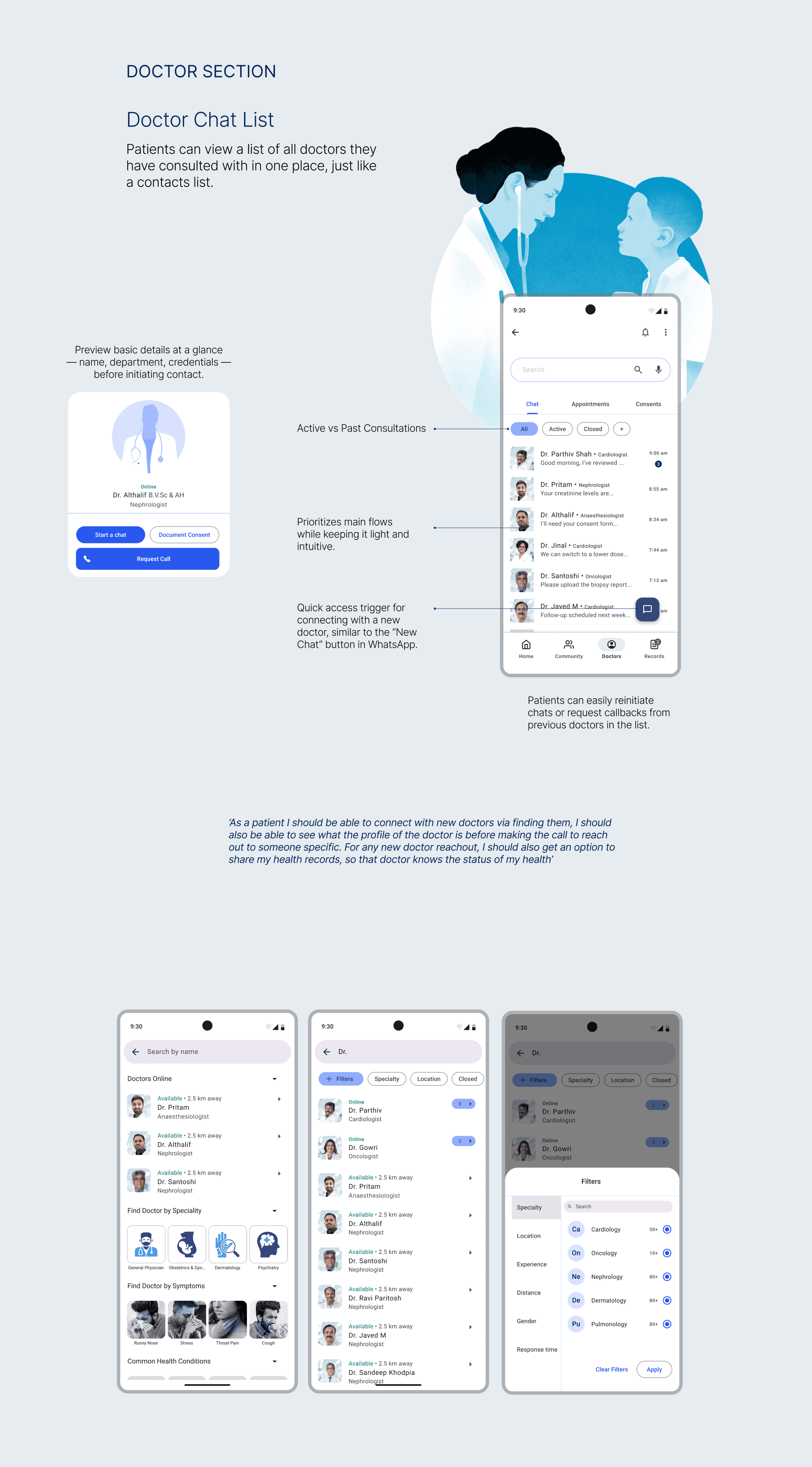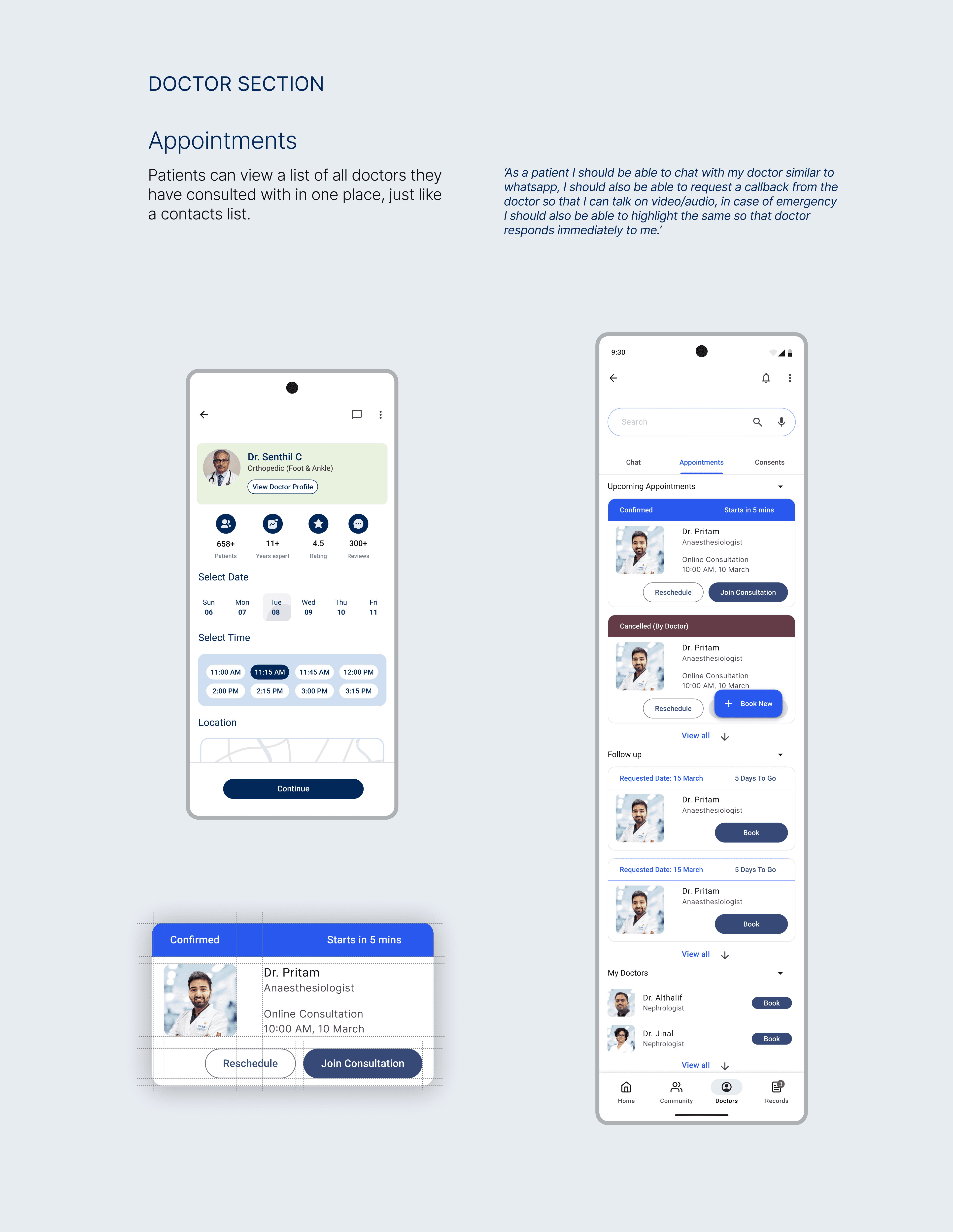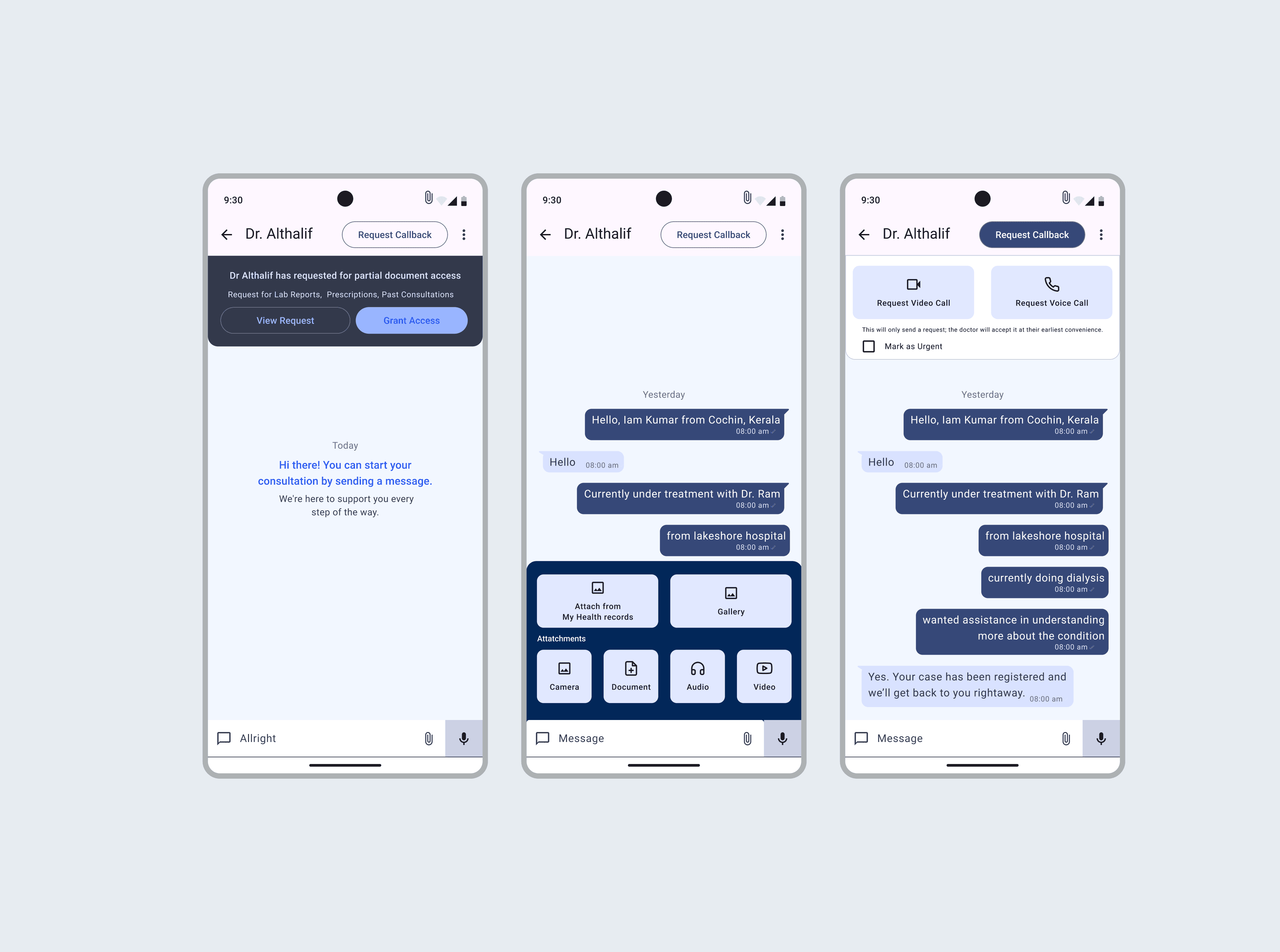 I led the end-to-end UX and UI design for the Patient App, defined flows & built all mid-fidelity prototypes. I also created the Doctors App while making sure of aligning shared patterns in both platforms.