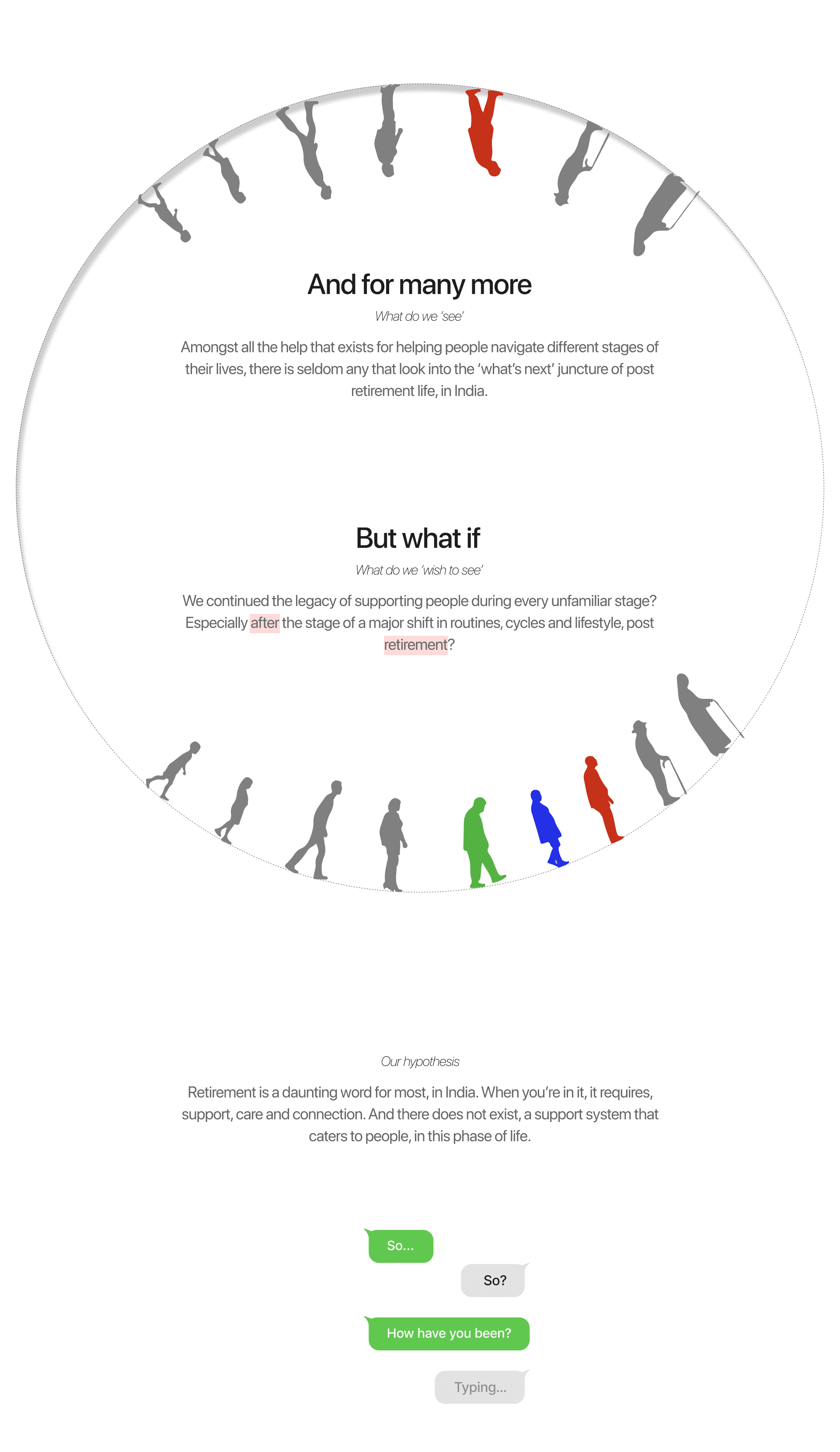 Mandali is a UX-driven service design project that reimagines post-retirement life through connection and purpose. It introduces a storytelling-based community platform where older adults can join or host small, recurring circles, creating routines of conversation, learning, and belonging.
