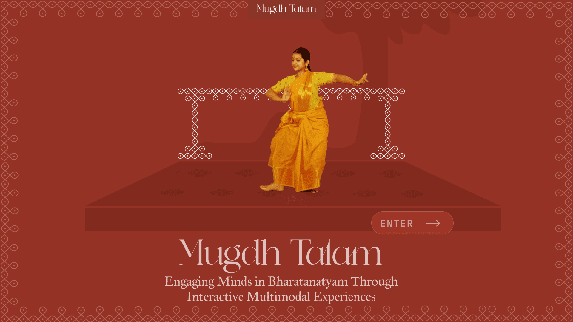 Our aim, is to create an interactive space that lets people see themselves as characters from Bharatanatyam dance routines. Their gestures, expressions and movements will be mirrored by a mythical character performing Bharatanatyam poses and gestures in a narrative.