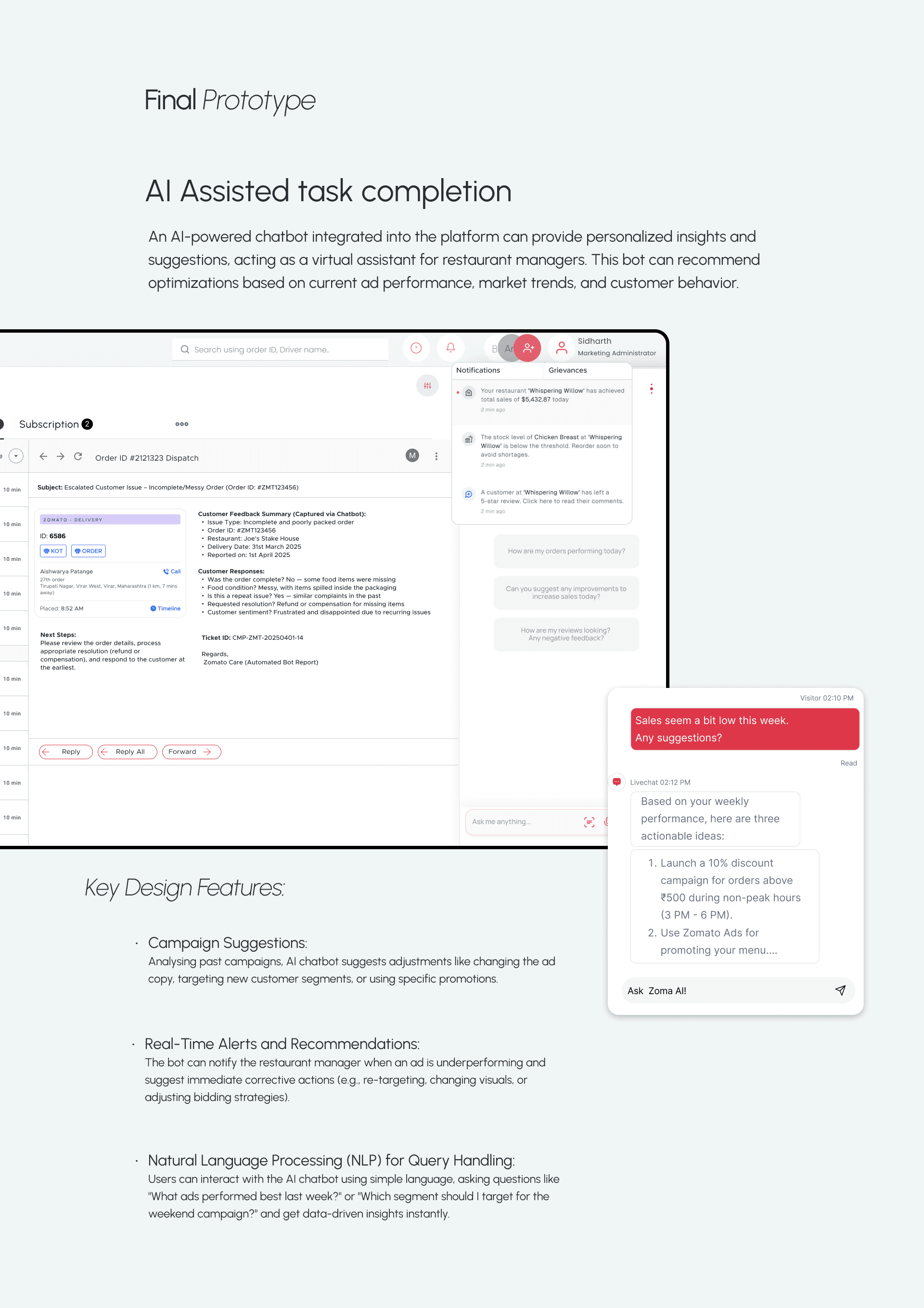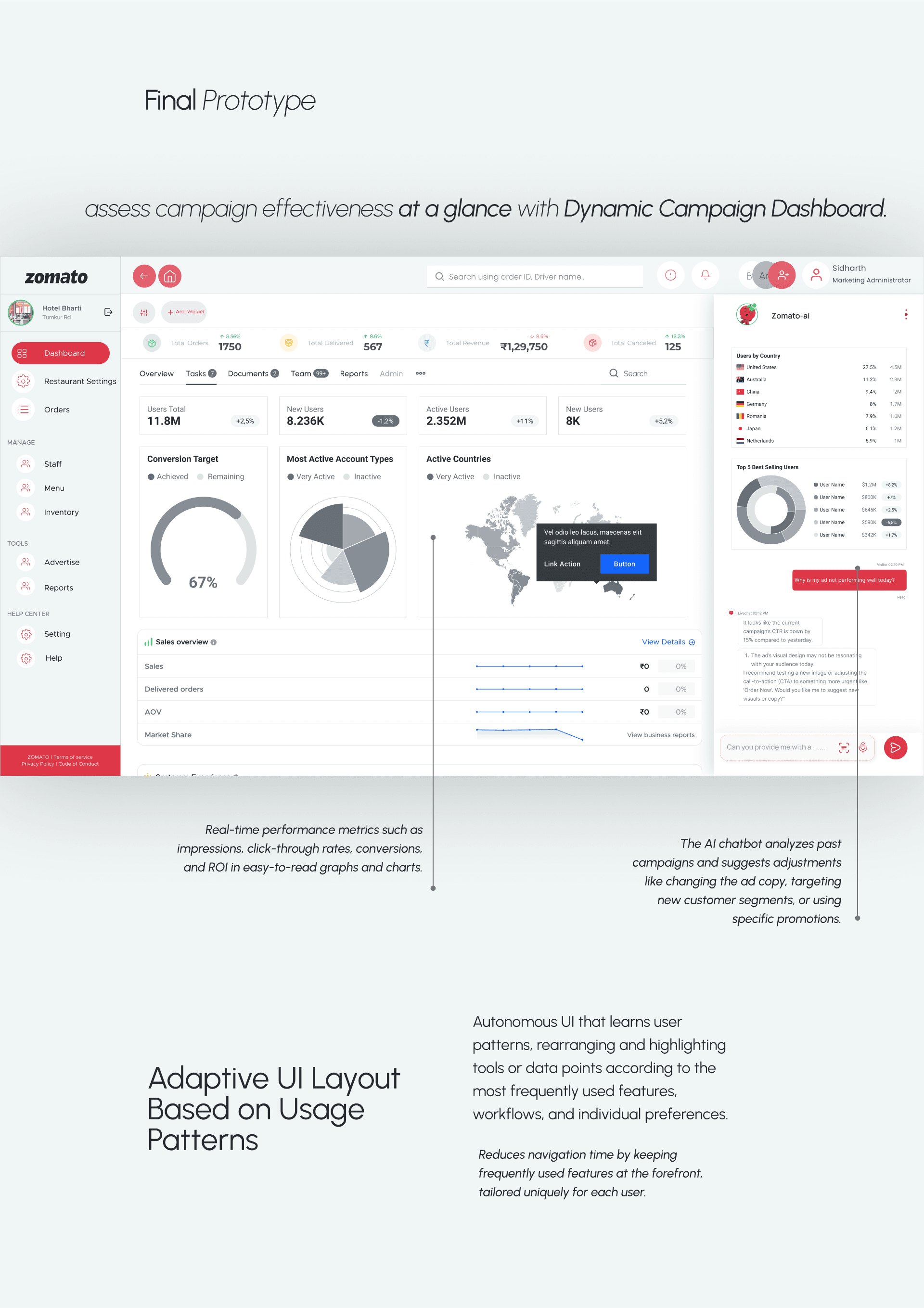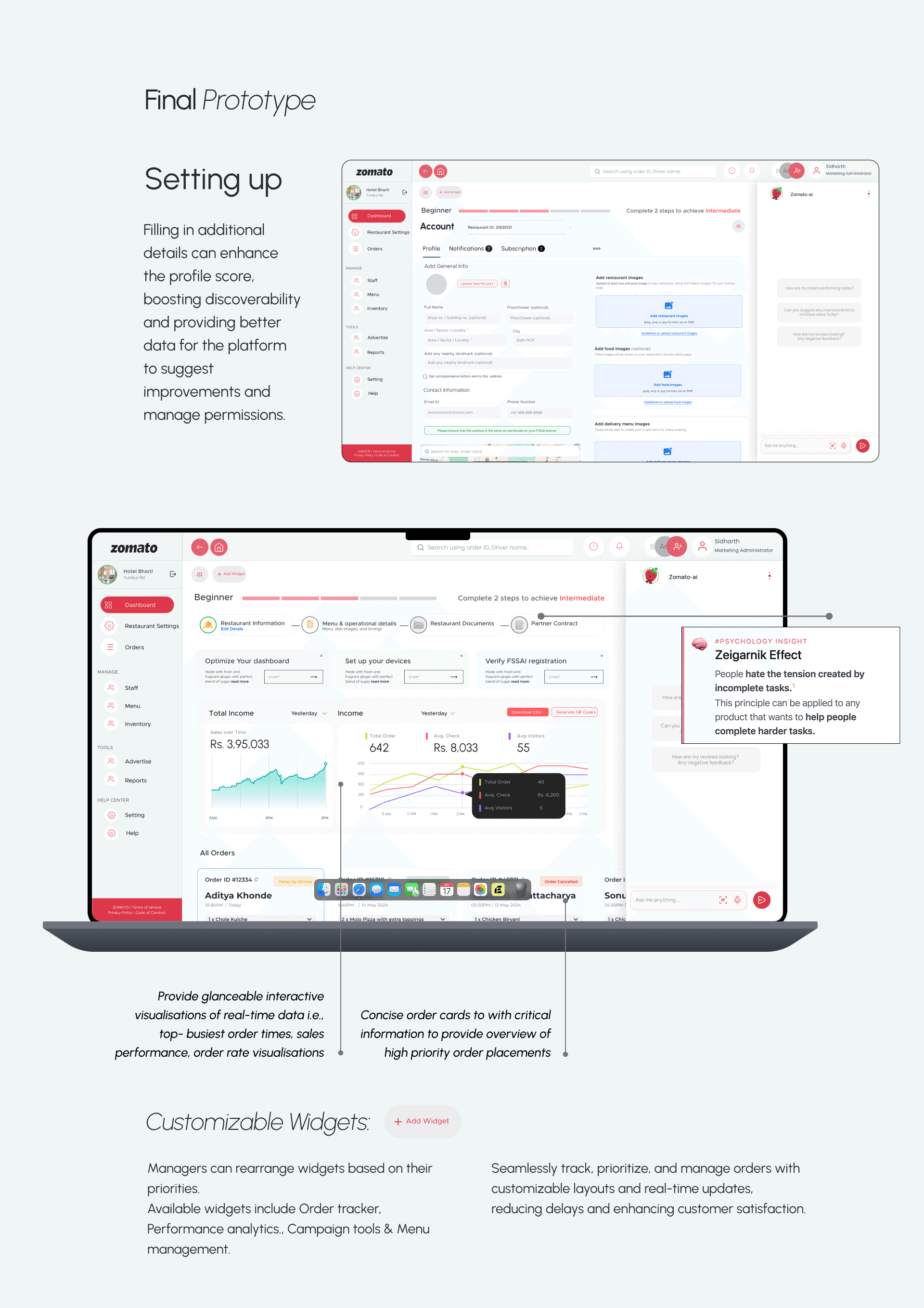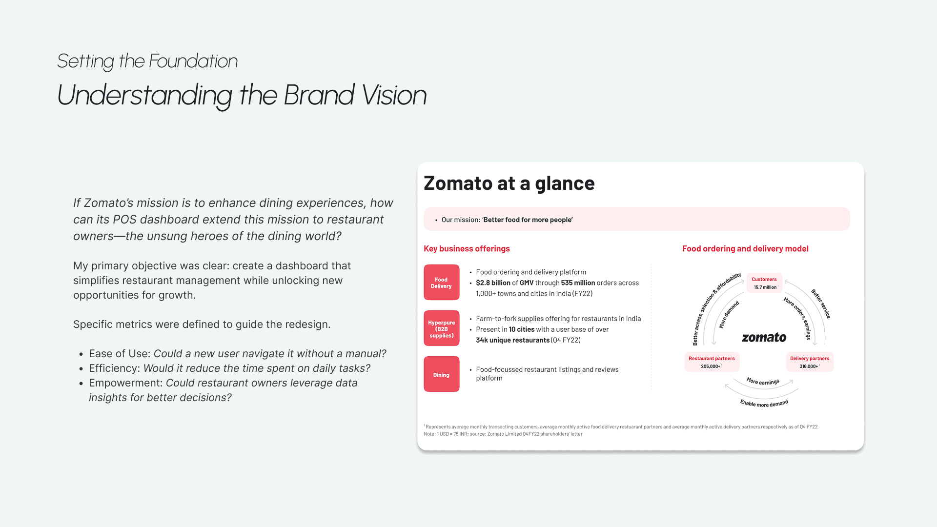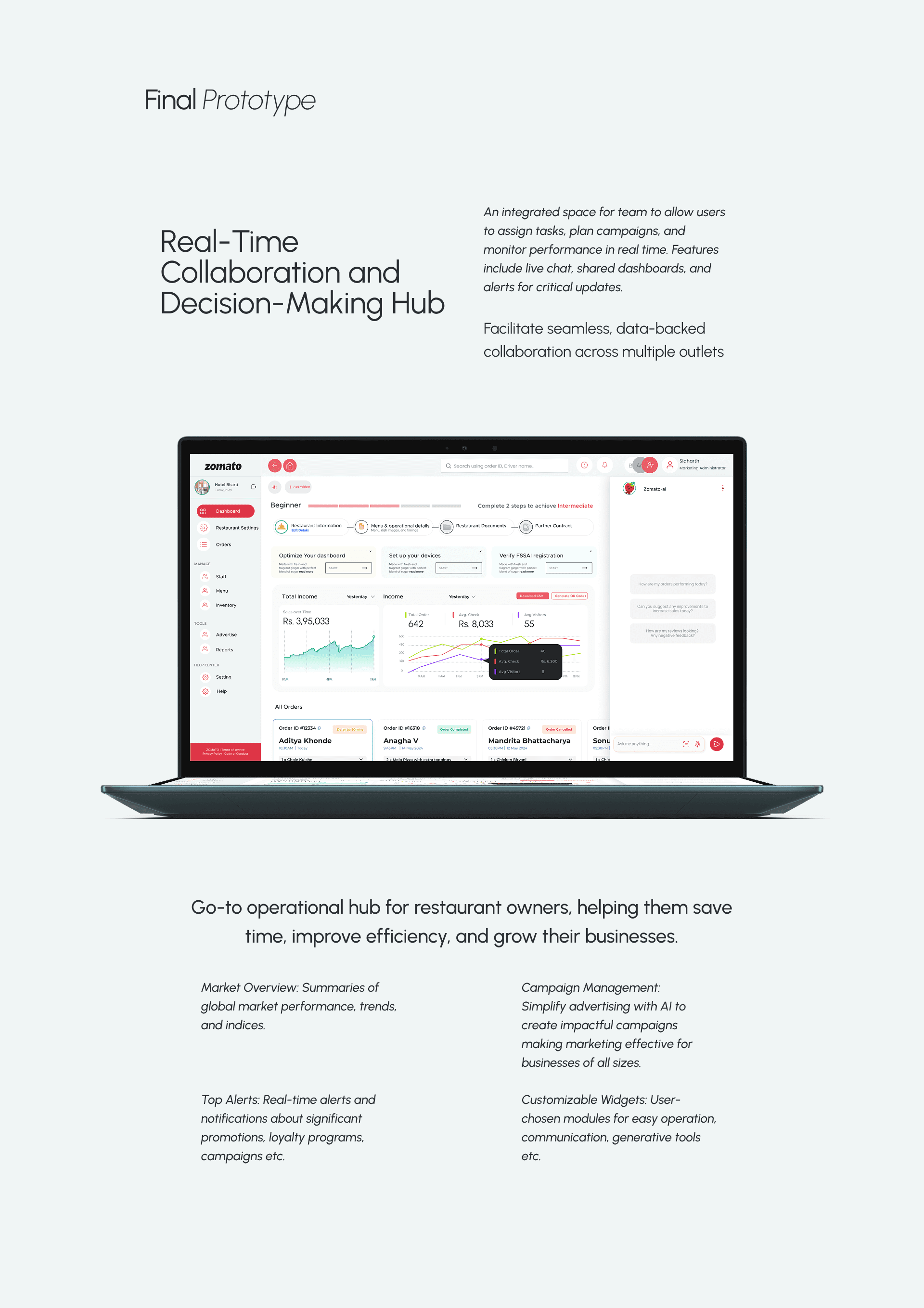 Redesigned Zomato platform specifically for restaurant owners, enabling them to manage their operations seamlessly.